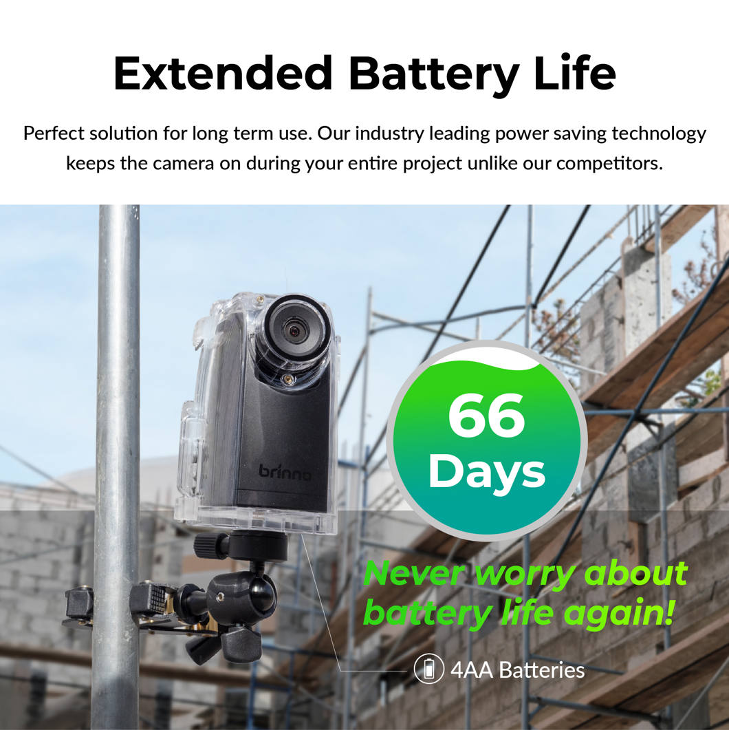 Ideální pro dlouhodobé projekty – revoluční technologie úspory energie Brinno udrží kameru v provozu déle než jakákoli akční kamera na trhu.